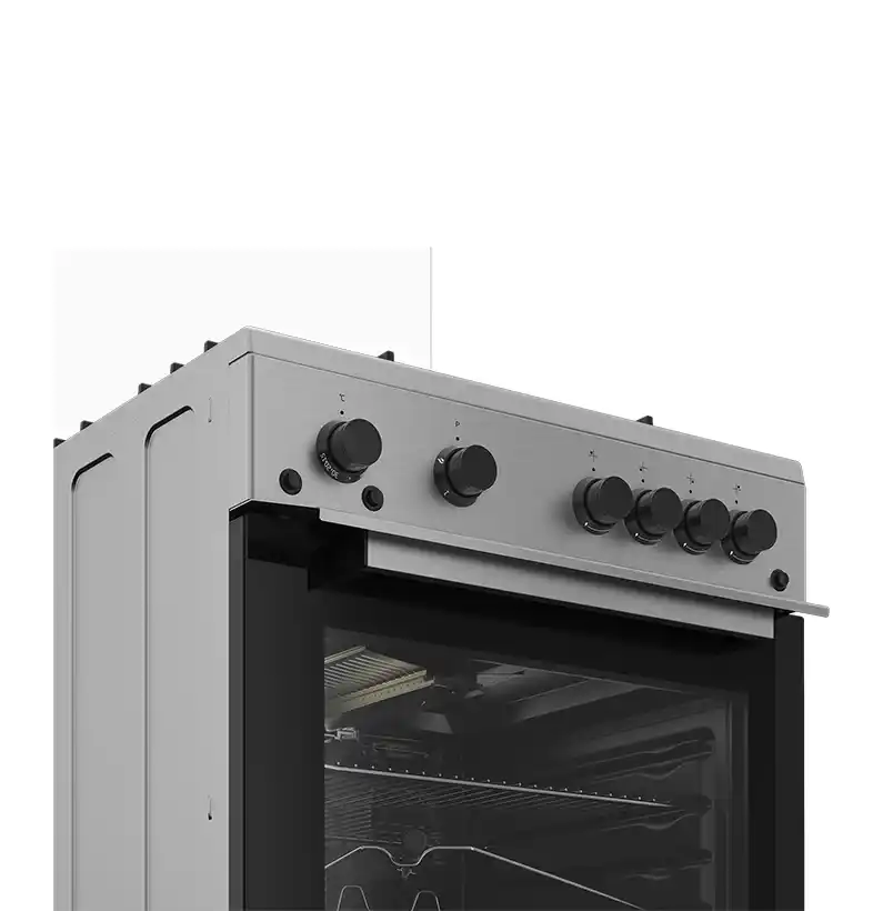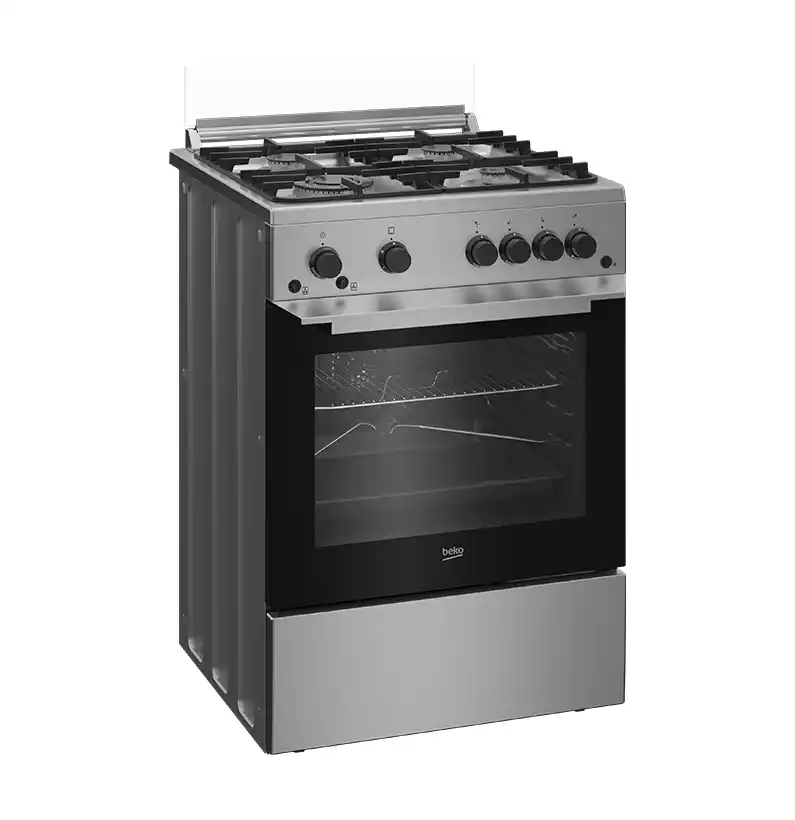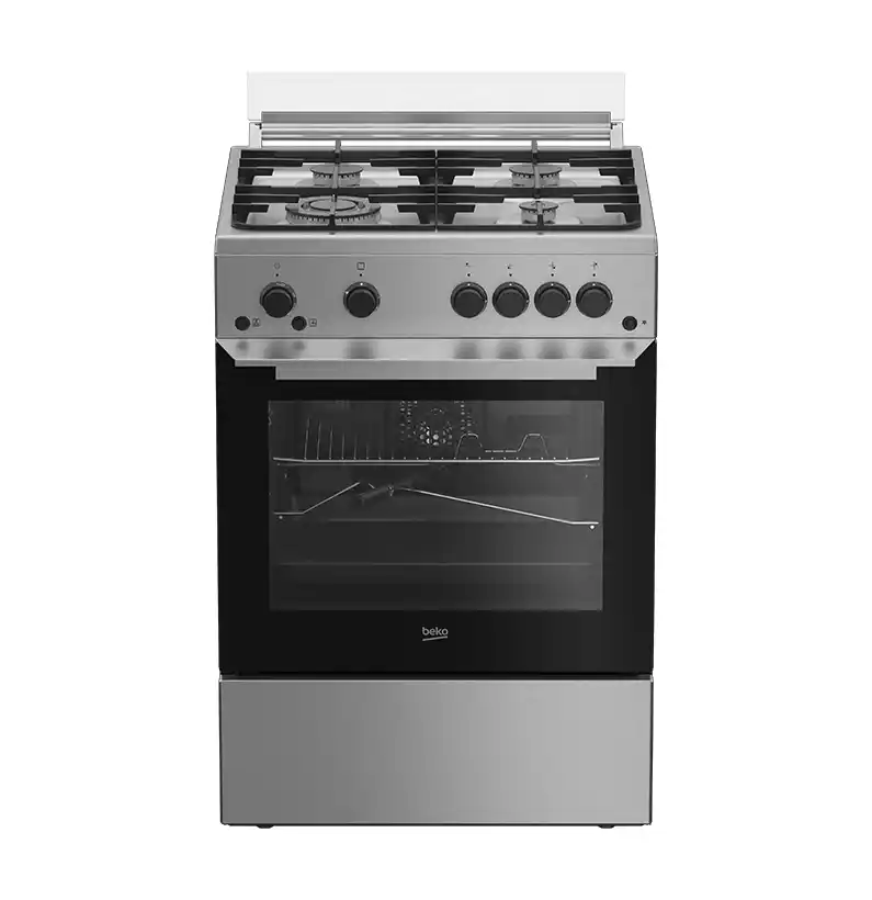 بوتاجاز بيكو قائم بذاته بعرض 60 سم، مزود بـ4 شعلات غاز (منها شعلة ووك)، نظام أمان كامل، إشعال ذاتي، شواية غاز، مروحة طهي، وحوامل حديد زهر. يتميز بإضاءة هالوجين داخل الفرن ومؤقت ميكانيكي. اللون ستانلس ستيل.