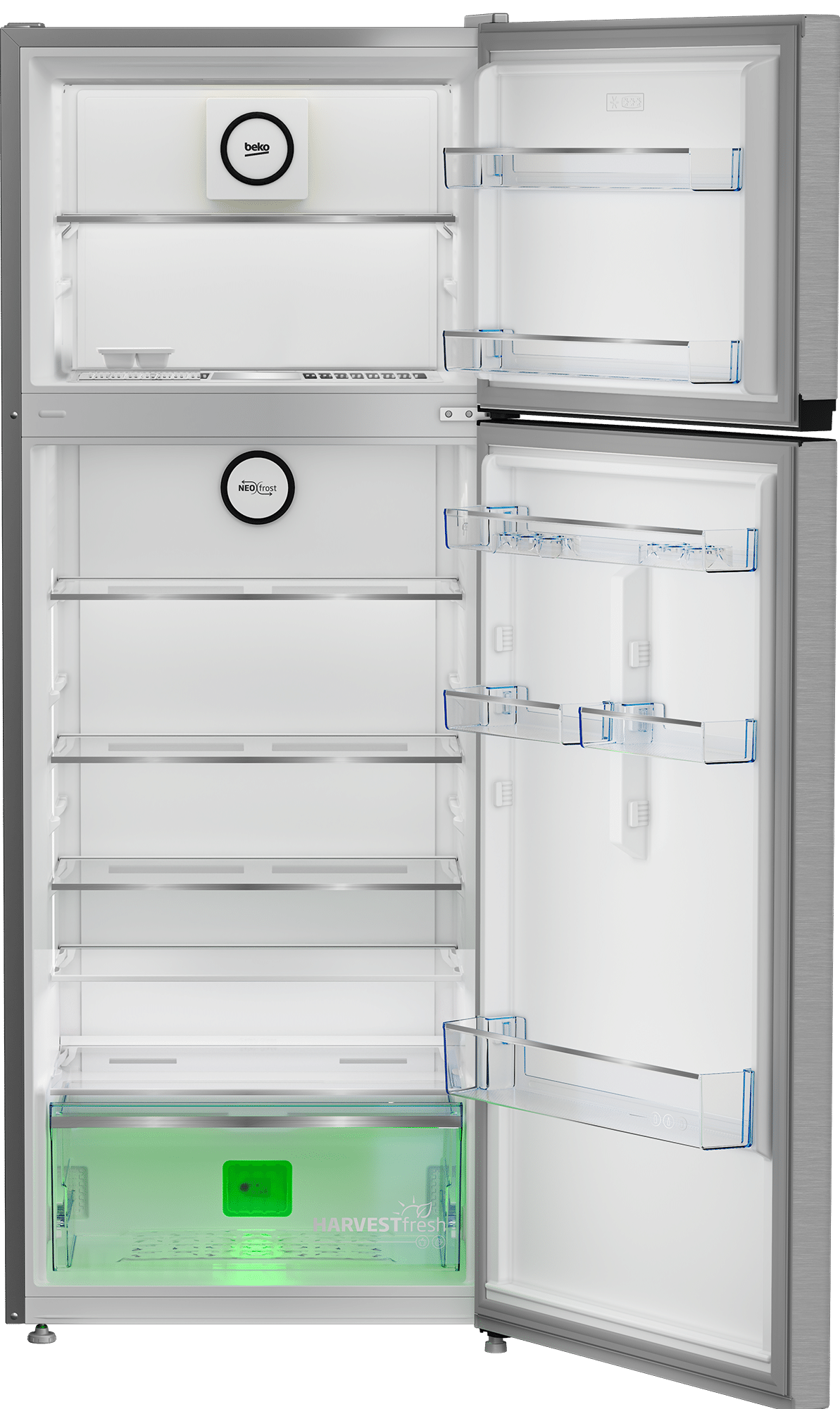 ثلاجة بيكو بسعة 455 لتر، تصميم أنيق باللون الفضي، مزودة بتقنية التبريد المزدوج NeoFrost التي تضمن نظامي تبريد منفصلين لكل حجرة، مما يمنع انتقال الروائح ويحافظ على الطعام طازجًا لفترة أطول. تحتوي على 4 أرفف لتوفير مساحة تخزين مرنة. مزودة بضاغط ProSmart Inverter الذي يوفر كفاءة عالية ويقلل من استهلاك الطاقة والضوضاء. الأبعاد: 70 سم عرض، 185 سم ارتفاع، 68.5 سم عمق.