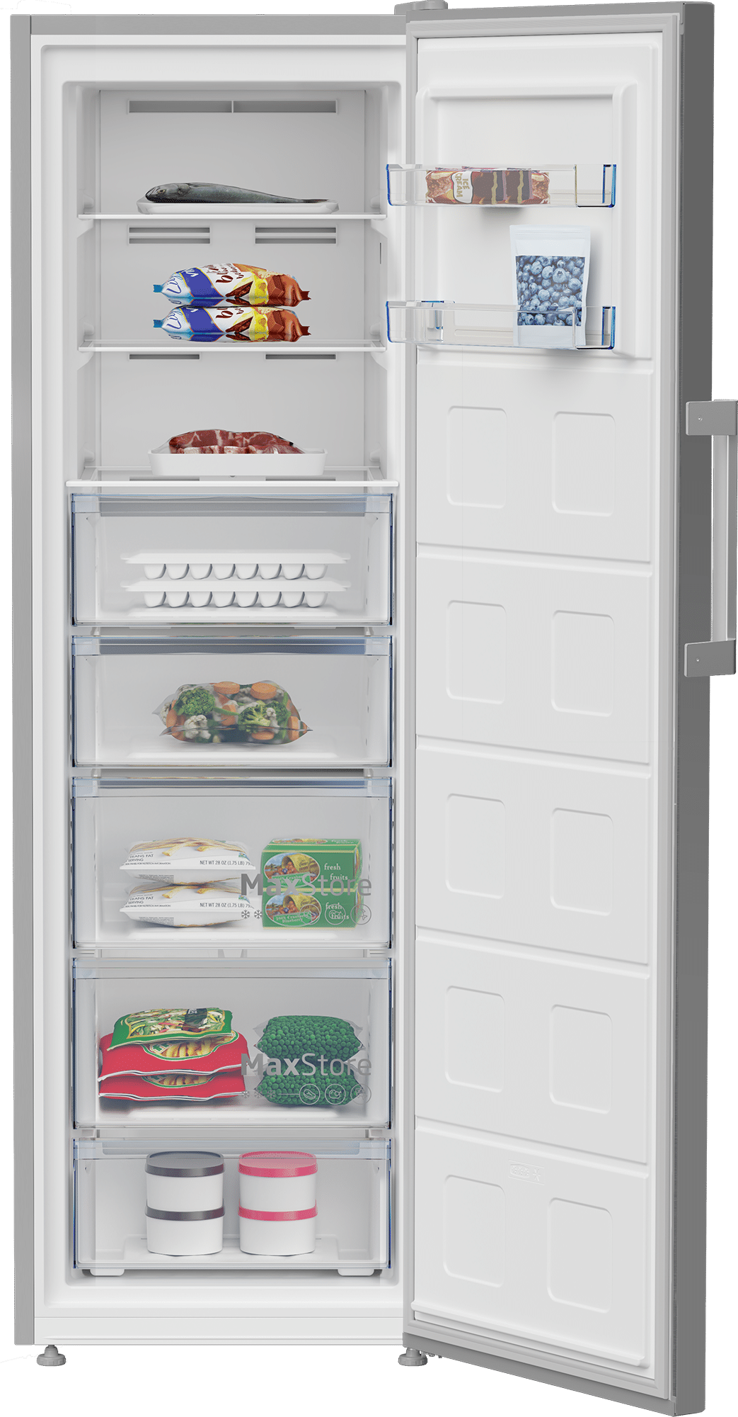 يتميز فريزر بيكو B3RFNE314ZXPE1 بتصميم رأسي أنيق باللون الفضي، مما يجعله مناسبًا لمختلف ديكورات المطابخ. يحتوي على شاشة ديجيتال لسهولة التحكم في درجة الحرارة وضبط الإعدادات. نظام التبريد نوفروست يضمن توزيعًا متساويًا للبرودة ويقلل من تراكم الثلج داخل الفريزر. كما أن السعة الكبيرة تتيح تخزين كميات وفيرة من الطعام.