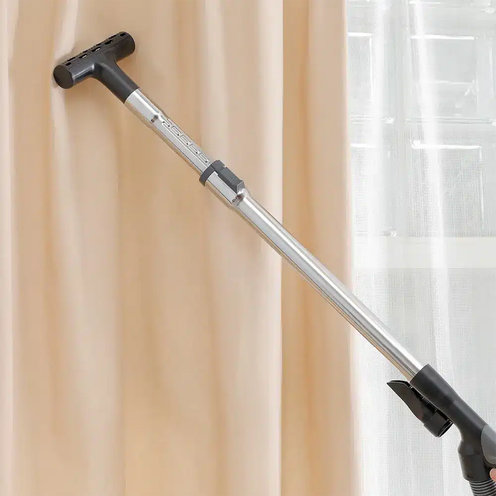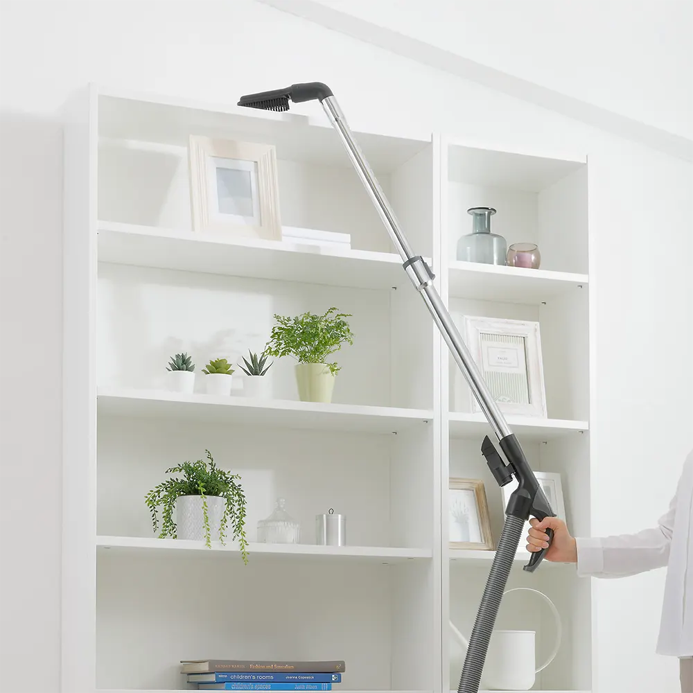 مزودة بمقبض مريح وأنبوب تلسكوبي معدني قابل للتعديل، مما يسهل الوصول إلى الأماكن المرتفعة والزوايا الضيقة. كما تحتوي على ملحقات متعددة مثل فرشاة الستائر، فرشاة الغبار المرنة، وفوهة الشقوق، لتلبية جميع احتياجات التنظيف.​