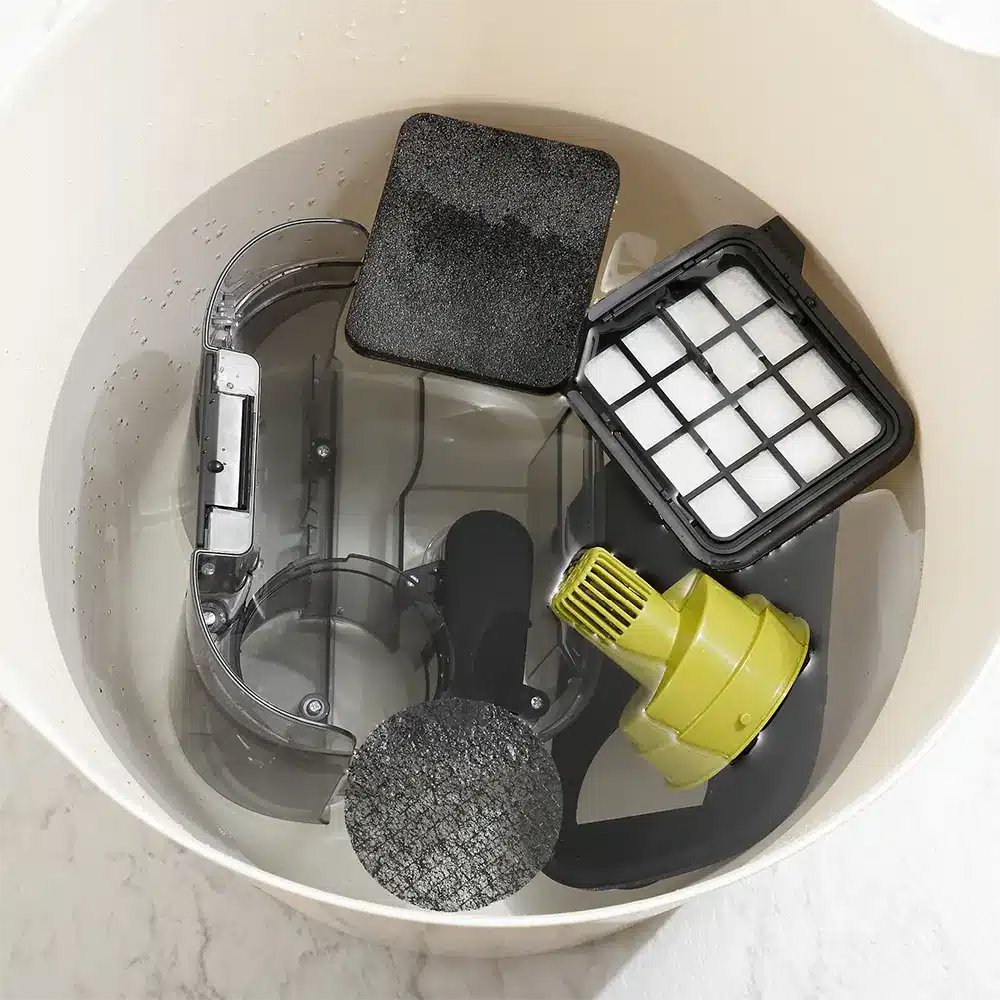 تحتوي على نظام ترشيح مكون من 6 طبقات، بما في ذلك فلتر HEPA (H13) وفلتر رئيسي قابل للغسل (E11)، مما يضمن تنقية الهواء الخارج من المكنسة. تأتي مع فوهة “Full Capture” التي تلتقط الأوساخ من الحواف والزوايا بفعالية.​