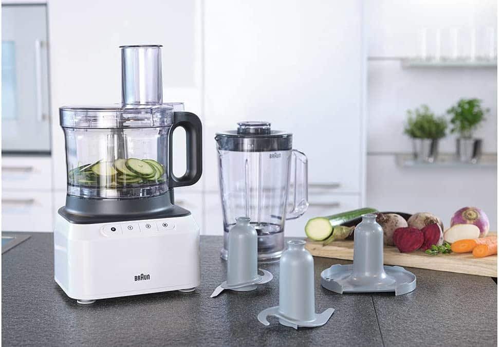 محضرة الطعام براون FP 3131 WH من مجموعة PurEase متعددة الاستخدامات ومزودة بمحرك قوي بقدرة 800 وات لتأدية كافة المهام اليومية في المطبخ مثل التقطيع، والبشر، والعجن، والخفق، والخلط. تأتي بوعاء سعة 2.1 لتر لتحضير كميات مناسبة من الطعام، بالإضافة إلى خلاط 1.2 لتر مناسب للعصائر والصلصات.