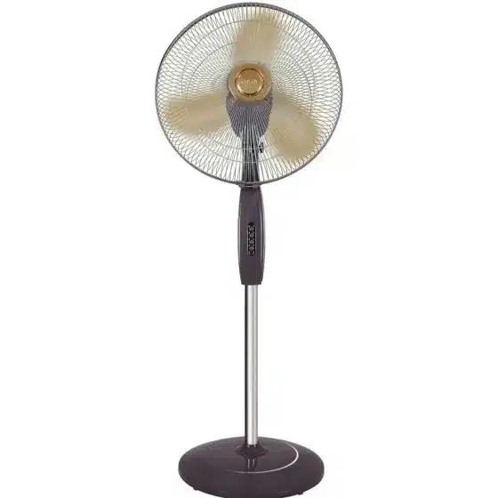 تعمل المروحة بقدرة 55 واط وتدعم جهد كهربائي 220-240 فولت وتردد 50-60 هرتز، مما يضمن أداءً فعالًا واستهلاكًا منخفضًا للطاقة. كما أن هيكلها المعدني يضيف إلى متانتها وطول عمرها الافتراضي.