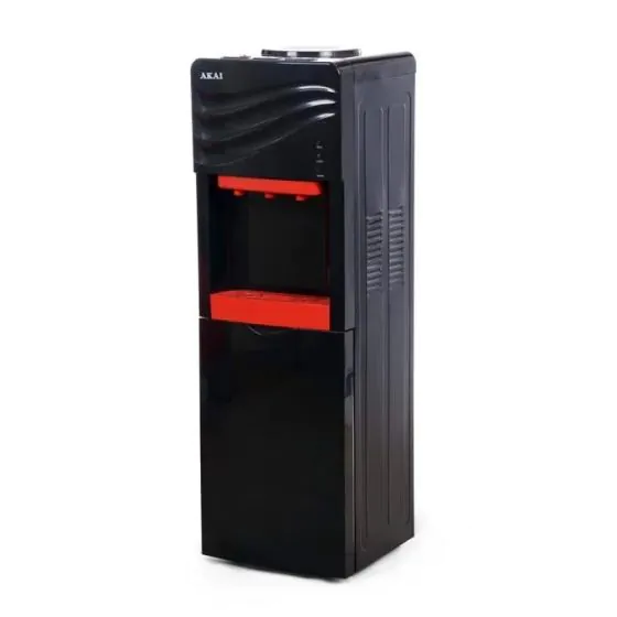 يتميز مبرد المياه أكاي BYL-F910 بتصميم أنيق يجمع بين اللون الأسود والواجهة الزجاجية، مما يضفي لمسة جمالية على أي مكان يوضع فيه. يحتوي على ثلاث حنفيات لتوفير المياه الباردة، الساخنة، والعادية، مما يلبي احتياجات المستخدمين المختلفة.