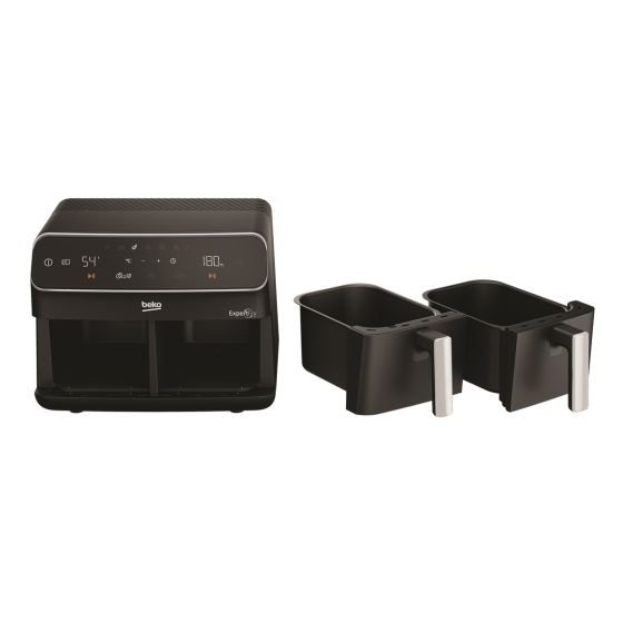 قلاية بيكو FRL 5388 B هي قلاية هوائية مزدوجة السعة، مصممة لتوفير تجربة طهي صحية وفعالة. بفضل تقنية الهواء الساخن، يمكنك تحضير وجبات لذيذة باستخدام كمية قليلة جدًا من الزيت، مما يقلل من الدهون بنسبة تصل إلى 80%.