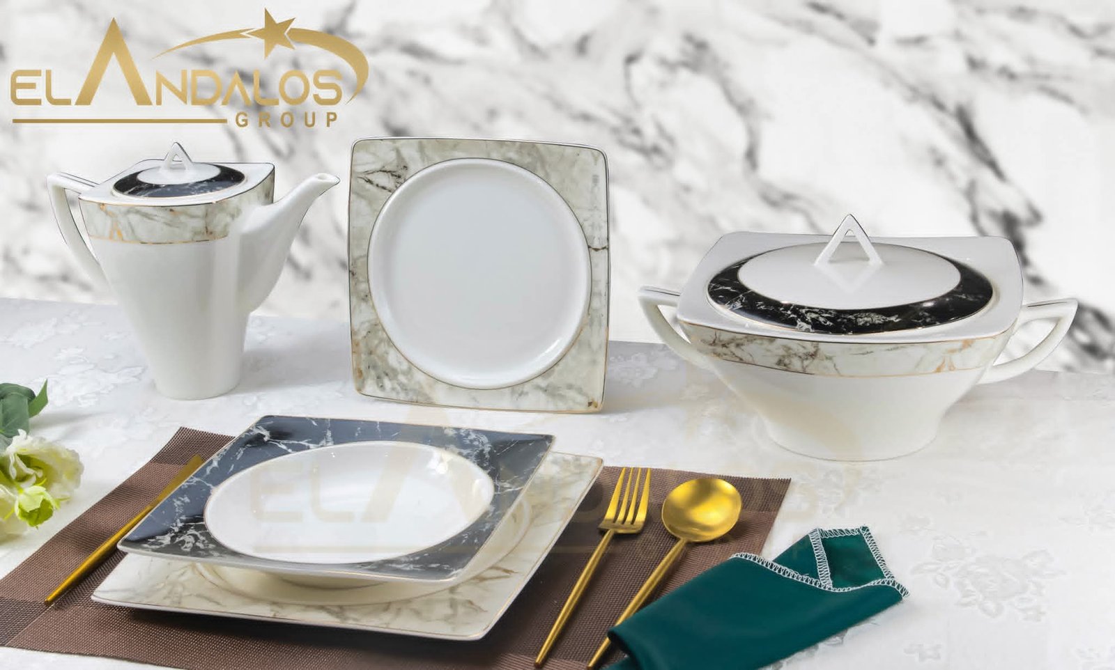 طقم عشاء بورسلين سكوير مذهب – الأندلس (62 قطعة) #4