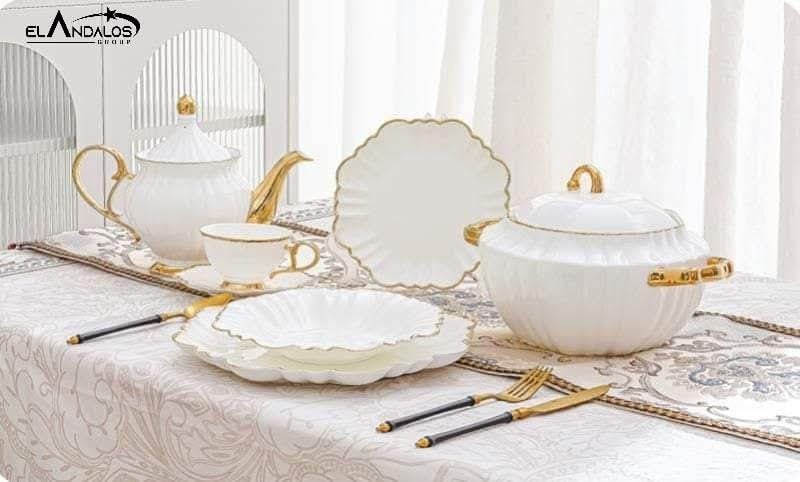 طقم عشاء بورسلين مضلع مدهب ٦٢ قطعة – الأندلس