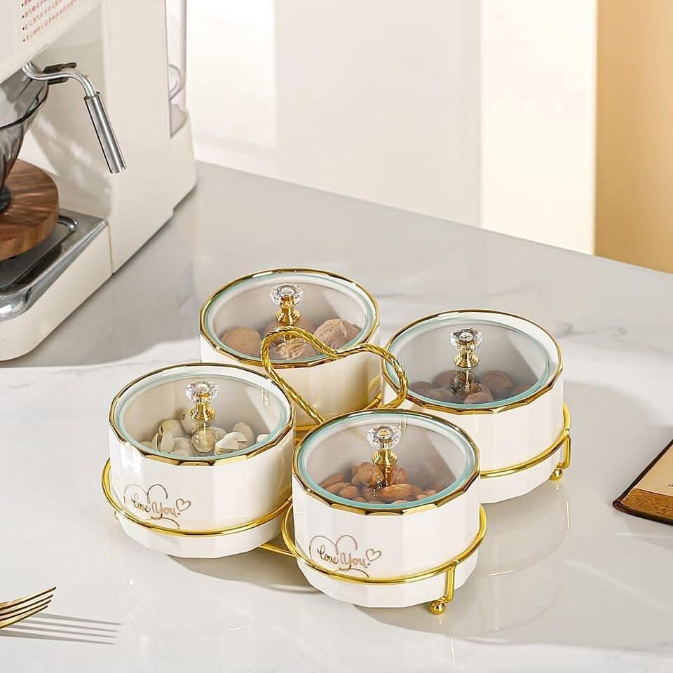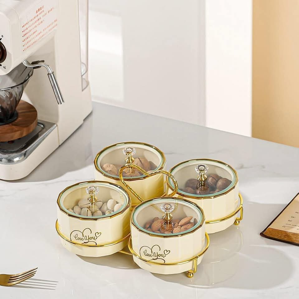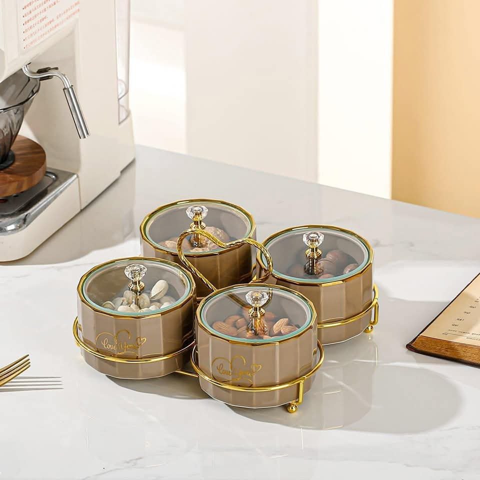 طقم تسالي بورسلين ٤ قطع بالحامل